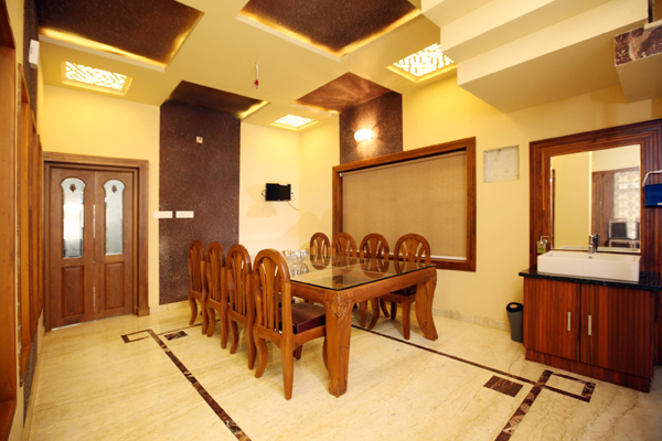 ഡൈനിങ് സ്പേസിലും െഎവറി വുഡൻ നിറത്തിെൻറ സമന്വയം. ഡൈനിങ് ടേബിളിന് അഭിമുഖമായി ഒരു വുഡൻ പാനൽ നൽകിയിരിക്കുന്നു. സീലിങ്ങിലും അതിെൻറ തുടർച്ചയാണ് കാണാൻ കഴിയുക. വുഡൻ ടേബിളിെൻറയും കസേരകളുടെയും ഡിസൈനിൽ പോലും കൊളോണിയല് ശൈലിയുടെ പിന്തുടര്ച്ചയുണ്ട്. ഇന്റീരിയറില് അത്യാവശ്യത്തിന് മാത്രമേ ഫര്ണിച്ചര് ഉപയോഗിച്ചിട്ടുള്ളു.
