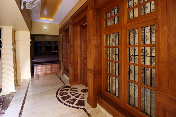 വീടിെൻറ ഒാരോ മൂലയും അവലംബിച്ച ശൈലിയോട് ലയിച്ചു കിടക്കണമെന്ന് ഡിസൈനർക്ക് ആഗ്രഹമുണ്ടായിരുന്നു. വുഡൻ ഫ്രെയിമിൽ ഒരുക്കിയ വാഷ് കൗണ്ടർ മുതൽ സീലിങ്ങിലും ലൈറ്റിങ്ങിലും വരെ ഇൗ തുടർച്ച കാണാൻ കഴിയും.