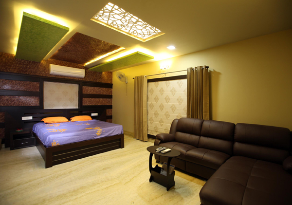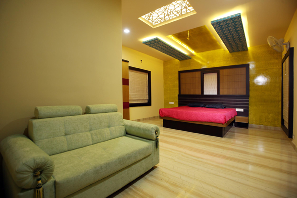 4000 സ്ക്വയർ ഫീറ്റിൽ പണിതീർത്ത വീട്ടിൽ നാലു കിടപ്പുമുറികളാണ് ഉൾപ്പെടുത്തിയത്. വിശാലമായ കിടപ്പുമുറികൾ വേണമെന്ന ഉടമയുടെ ആവശ്യം ഡിസൈനർ പരിഗണിച്ചിട്ടുണ്ട്. ബാത്ത്റൂമും ഡ്രസിങ് സ്പേസും ഒരുക്കുന്നതിനോടൊപ്പം കിടപ്പുമുറിയിൽ തന്നെ എന്റർടെയിൻമെന്റ് ഏരിയയും ഡിസൈൻ ചെയ്തു.