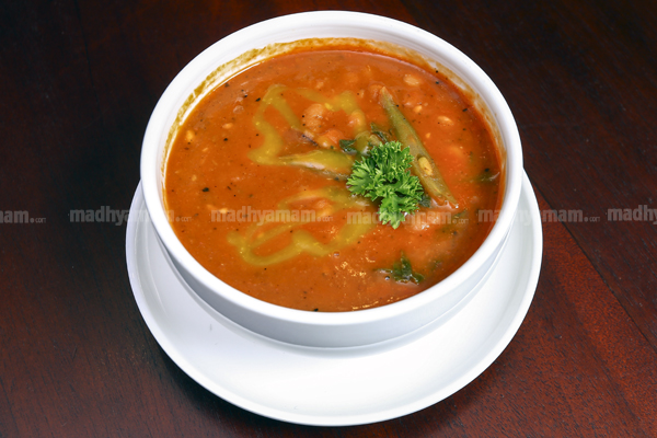 അടികട്ടിയുള്ള സോസ്പാനിൽ ഒലിവ് ഓയിൽ ഒഴിച്ച് ഇടത്തരം തീയിൽ ചൂടാക്കുക. സവാള, വെളുത്തുള്ളി, മുളക്, കാരറ്റ് എന്നിവയിട്ട് സോഫ്റ്റ് ആകുന്നതുവരെ വഴറ്റുക. തക്കാളി, ബേബി കോൺ, മൈദ, ഉരുളക്കിഴങ്ങ്, കാപ്സിക്കം പ്യൂരി എന്നിവയും മൂന്ന് കപ്പ് വെജിറ്റബ്ൾ സ്റ്റോകും ചേർത്ത് ചെറുതീയിൽ വേവിക്കുക. ഉപ്പ്, കുരുമുളക്, നാരങ്ങ നീര് എന്നിവ സ്വാദനുസരിച്ച് ചേർക്കുക. ആവശ്യമെങ്കിൽ കൂടുതൽ സ്റ്റോകും ചേർക്കാം. പാഴ്സലികൊണ്ട് അലങ്കരിച്ച് ചൂടോടെ വിളമ്പാം.