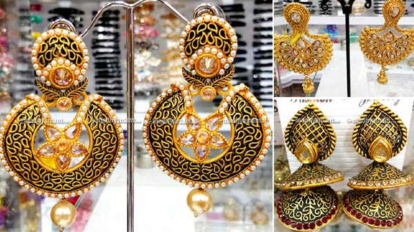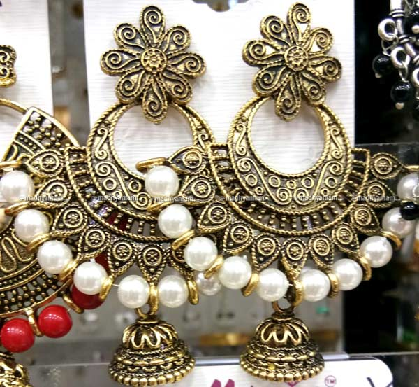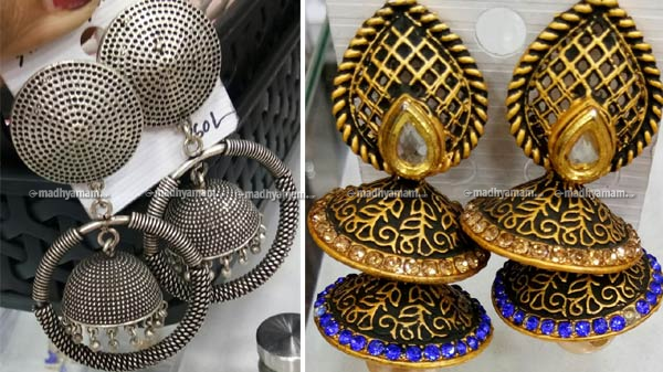 ബ്ലാക്ക് മെറ്റൽ, വൈറ്റ് മെറ്റൽ, ഗോൾഡൻ മെറ്റൽ, കോപ്പർ അലോയ് കോട്ടിങ്, ഓക്സിഡൈസ്ഡ് മെറ്റീരിയലുകളിൽ ഈ കമ്മലുകൾ ലഭ്യമാണ്. പരിച പോലെ കാതിൽ കിടക്കുന്നവയും ബ്ലാക്ക്, ഗോൾഡൻ മെറ്റീരിയലും ചേരുന്ന സ്റ്റഡുകളിൽ തൂങ്ങിക്കിടക്കുന്ന കല്ലുവെച്ച വലിയ കമ്മലിനാണ് ആരാധകരേറെ... അതേ സ്റ്റൈലിൽ ആന്റിക് ഡിസൈനിൽ ഗോൾഡൻ മെറ്റലിലും ലഭിക്കും. 425 രൂപ മുതലാണ് ഇവയുടെ വില തുടങ്ങുന്നത്.