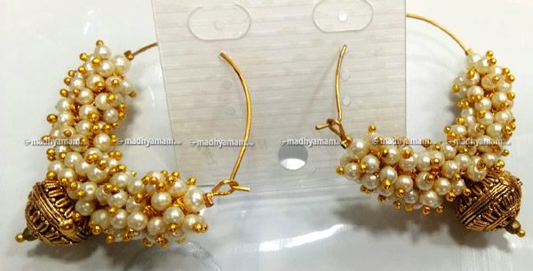 എന്നാൽ, ഇപ്പോൾ ജിമിക്കികമ്മലിനു പാരയായി എത്തിയിരിക്കുന്നത് മറ്റൊരു കമ്മലാണ്. കാതിനു താഴെ വളയങ്ങളിൽ നിറയെ ചെറിയ ഗോൾഡ് വൈറ്റ് പേളുകളും മുത്തുകളും ഉരുണ്ട ഞാത്തുമായി എത്തിയിരിക്കുന്ന പുതിയ കമ്മലാണ്. ആന്റിക് ഡിസൈനുകളിലും പരമ്പരാഗത ശൈലിയിലുള്ള ഡിസൈനിലുമാണ് ഈ കമ്മൽ എത്തിയിരിക്കുന്നത്. 125 രൂപ മുതൽ കമ്മലുകൾ ലഭ്യമാകും. ചുവപ്പ്, പച്ച, വെള്ള, പിങ്ക് അടക്കം എല്ലാ കളറുകളോട് കൂടിയതും ലഭിക്കും.