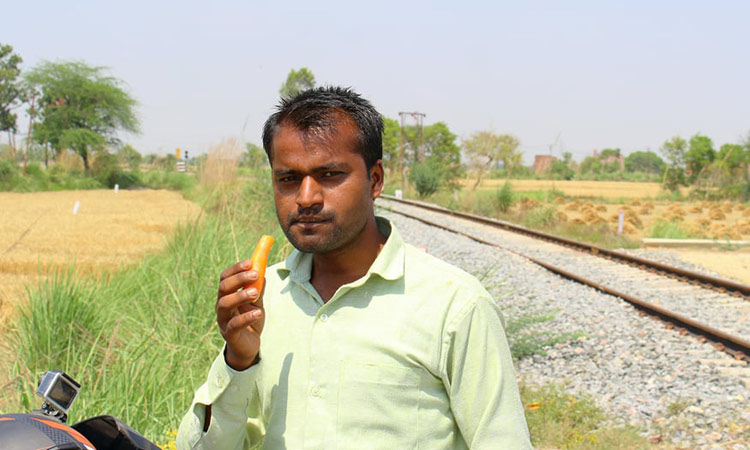 ‘എങ്ങോട്ടാ തിരക്കിട്ട് ബൈക്കിൽ പായുന്നത്’ എന്നായിരുന്നു അയാളുടെ ചോദ്യം. എനിക്കെന്താ ഇൗഗ്രാമത്തിൽ കാര്യം എന്ന മട്ടിലായിരുന്നു അയാളുടെ ചോദ്യം. ലക്നൗവിലേക്കുള്ള വഴി ഞാനയാളോട് ചോദിച്ചു. സുന്ദരമായ ഗോതമ്പു പാടങ്ങൾ കണ്ടതുകൊണ്ട് ഇതുവഴി വന്നതാണെന്ന് ഞാനയാളോട് പറഞ്ഞു. എെൻറ യാത്രയെക്കുറിച്ചും ജോലിയെക്കുറിച്ചുമൊക്കെ അയാൾ നിരവധി ചോദ്യങ്ങൾ ചോദിച്ചു. ഒരു ജോലിയുമില്ലാതെ നടക്കുന്ന അയാൾക്ക് കേരളത്തിൽ വന്നാൽ എന്തെങ്കിലും ജോലി കിട്ടുമോ എന്നായിരുന്നു അറിയേണ്ടിയിരുന്നത്. ഇതര ദേശ തൊഴിലാളികൾക്ക് കേരളത്തിൽ ഒരുപാട് ജോലിയുണ്ടെന്ന് ഞാനയാളോട് പറഞ്ഞു. ബൈക്കിലെ കവറിൽ കെട്ടിവെച്ചിരുന്ന കാരറ്റ് നിറച്ച കവർ എനിക്കയാൾ വെച്ചുനീട്ടി. ഞാനതിൽനിന്ന് മൂന്ന് നാലെണ്ണം എടുത്ത് ബാക്കി തിരികെ കൊടുത്തു. കഴുകിയതിെൻറ നനവുണ്ടായിരുന്നതിനാൽ നല്ല തണുപ്പുണ്ടായിരുന്നു കാരറ്റിന്. അയാേളാട് യാത്ര പറഞ്ഞ്ഞാൻ വുണ്ടും അതിവേഗ പാതയിൽ കയറി.