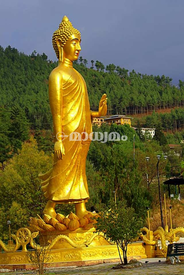 വൈകിട്ട് 5.30 മുതൽ 6.30 വരെ മാത്രമേ അകത്തേക്ക് ടിക്കറ്റ് വെച്ച് പ്രവേശനമുള്ളു എന്നതിനാൽ പുറത്തുനിന്ന് നോക്കികണ്ട വാങ്ചൂ നദിക്കരയിലെ പാലത്തിനരികെ പോയിരുന്നു. ബുദ്ധമത വിശ്വാസങ്ങളും െഎതീഹ്യങ്ങളും അതിലെ ചുമരുകളിൽ ചിത്രങ്ങളായി നിറഞ്ഞുനിൽക്കുന്നു. നിർത്താതെ പെയ്യുന്ന മഴയിൽ സ്കൂൾ വിട്ട് നനഞ്ഞുവരുന്ന കുട്ടികൾ പാലത്തിലൂടെ ഒാടിപ്പോകുന്നുണ്ട്. എന്തുരസമാണ് ആ കാഴ്ച...!! ഭൂട്ടാൻ വേഷമായ ‘ഖോ’യും ‘കിറ’യും തന്നെയാണ് അവരുടെ യൂണിഫോം. കുട്ടികൾക്ക് അത് നന്നായി ചേരുന്നുമുണ്ട്. മഴ തെല്ലൊന്ന് അടങ്ങിയേപ്പാൾ ഞാൻ റൂമിലേക്ക് മടങ്ങി. ഇൻറർനെറ്റ് കണക്ഷനുവേണ്ടി ലോബിയിലേക്ക് എത്തി. എന്നെ കണ്ടേപ്പാൾ എമിഗ്രേഷനൊക്കെ ശരിയായില്ലേ എന്നു ചോദിച്ച് ഹോട്ടൽ ഉടമ സോനം അടുത്തെത്തി. ശരിയായെന്നും ടൂ വീലറുകളോടുള്ള ഭൂട്ടാൻ സർക്കാറിെൻറ അവഗണനയിൽ പ്രതിേഷധിച്ച് അടുത്ത ദിവസം തന്നെ ഇന്ത്യയിലേക്ക് മടങ്ങുകയാണെന്നും ഞാൻ പറഞ്ഞു. വൈകുന്നേരം ടെന്നിസ് കളിക്കുവാൻ പോകുകയായിരുന്ന സോനം എന്നെക്കൂടി കാറിൽ കൊണ്ടുപോയി. കൂറ്റൻ ബുദ്ധ പ്രതിമയുള്ള പാർക്കിൽ അദ്ദേഹം എന്നെ ഇറക്കിത്തന്നു. ആ പ്രതിമക്കരികിൽ നിന്ന് നോക്കിയാൽ അങ്ങകലെ കുന്നിൻ മുകളിൽ മറ്റൊരു കൂറ്റൻ പ്രതിമകൂടി കാണാം.