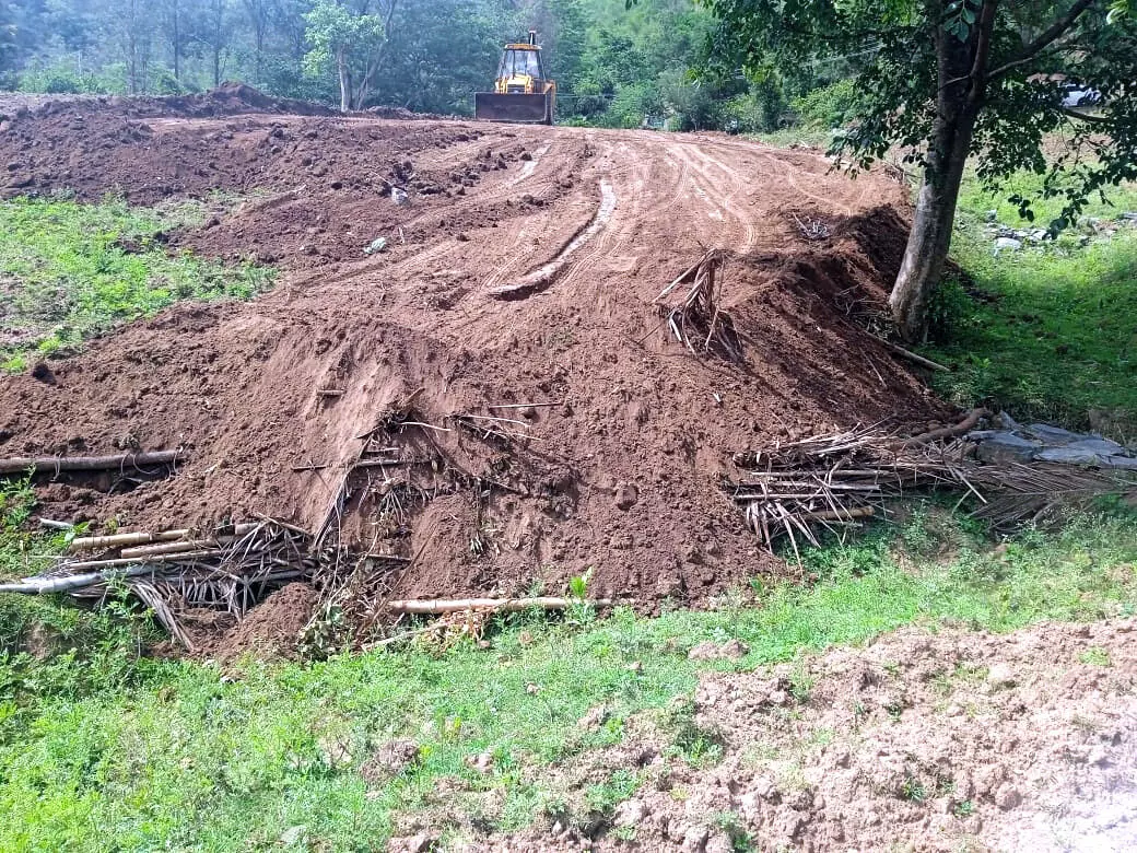 മരപ്പാലത്ത് ആദിവാസിഭൂമി കൈയേറിയവർ മണ്ണുമാന്തിയന്ത്രവുമായി എത്തിയപ്പോൾ