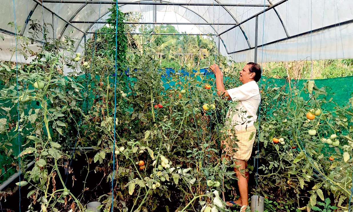 അക്വാപോണിക്സ് സംവിധാനത്തിലൂടെ കുളത്തിൽ വളർത്തുന്ന മത്സ്യങ്ങൾക്ക് പച്ചിലകൾ, പച്ചക്കറിവേസ്റ്റുകൾ എന്നിവ മത്സ്യങ്ങൾക്ക് തീറ്റ നൽകിയാൽ രുചി വർധിപ്പിക്കാനാവും. മത്സ്യക്കുളത്തിലെ അവശിഷ്ടങ്ങൾ മോട്ടോർ ഉപയോഗിച്ച് ചെടികൾക്ക് വളമായി നൽകുന്നത് പച്ചക്കറിവിളകളുടെ രുചിയിൽ നല്ല മാറ്റങ്ങൾ ഉണ്ടാക്കും. അക്വാപോണിക് സംവിധാനം കോവിഡിനെ തുടർന്ന് സാർവത്രികമാകുകയാണ്. യൂറോപ്പ് തുടങ്ങി മറ്റു രാജ്യങ്ങളിലും വ്യാപകമായിക്കഴിഞ്ഞു. നാട്ടിൽ പപ്പായ, ചേന തുടങ്ങി എല്ലാവിധ പച്ചക്കറികളും അക്വാപോണിക്സ് സംവിധാനത്തിൽ ടെറസിനു മുകളിൽവരെ വൻ വിജയമാെണന്ന് പി.കെ.ആർ പറഞ്ഞു. പോളിഹൗസ് രീതിയിലുള്ള കൃഷി കടന്നുവന്നിരിക്കയാണ്. എട്ടുവർഷം മുമ്പാണ് സർക്കാറിെൻറ പ്രോത്സാഹനത്തിൽ പോളിഹൗസ് തുടങ്ങിയത്. പോളിഹൗസ് രീതി പ്രയോഗിച്ച് കൃഷി വലിയ വിജയത്തിലെത്തിക്കാൻ കഴിഞ്ഞതായി റസാഖ് പറഞ്ഞു. കാറ്റ് കടക്കാത്തതും കീടങ്ങളുടെ ആക്രമണം അൽപംപോലുമില്ലാത്തതുമാണ് ജൈവരീതിയിലുള്ള ഈ കൃഷി. മേലേനിന്ന് നല്ല സൂര്യപ്രകാശവും ലഭിക്കുന്നു. മഞ്ഞുപോലെ ജലം തളിക്കുന്നതിനാൽ ഊഷ്മാവിെൻറ സമനില നിർത്താനാവും. ഉൽപാദനവും മികച്ചതാക്കാൻ കഴിയുന്നുണ്ട്.