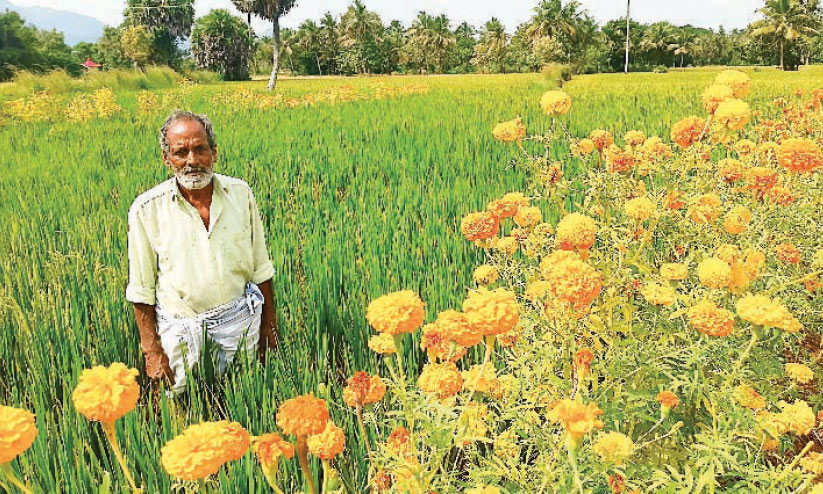 text_fieldsരാമകൃഷ്ണന്റെ നെൽപാടവരമ്പിൽ പൂത്തുനിൽക്കുന്ന ചെണ്ടുമല്ലി കൃഷി