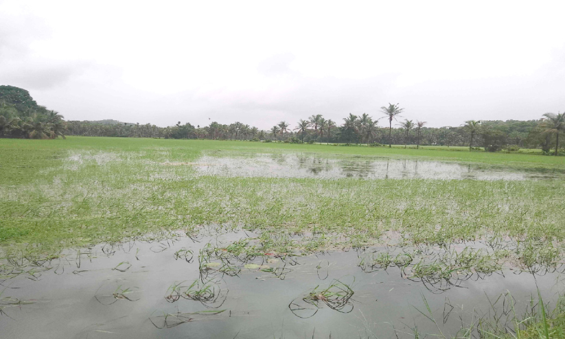 ചെറുവത്തൂർ: കനത്ത മഴയെ തുടർന്ന് വെള്ളം കയറിയ വയലുകളിൽനിന്ന് വെള്ളമിറങ്ങിയില്ല.