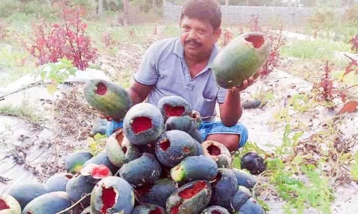 കാക്ക കൊത്തി; 2000 കിലോ തണ്ണിമത്തൻ