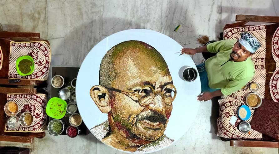 കാര്ഷിക വിത്തുകള് കൊണ്ട് ഗാന്ധിജിയുടെ ചിത്രവുമായി ഡാവിഞ്ചി സുരേഷ്