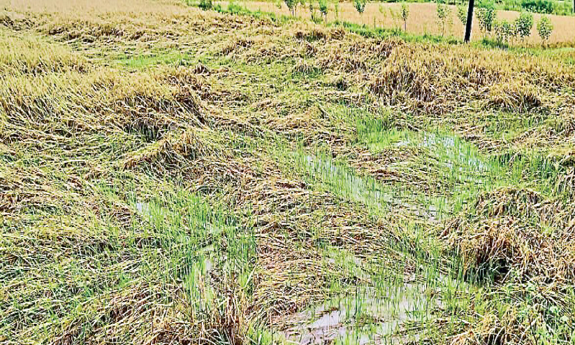 നിർത്താതെ പെയ്യുന്ന മഴക്ക് കഴിഞ്ഞ ദിവസമായി ശമനമുണ്ടെങ്കിലും വയലുകളിലെ വെള്ളക്കെട്ട് ഒഴിയാത്തത് കർഷകരെ പ്രതിസന്ധിയിലാക്കുന്നുണ്ട്. മഴയിൽ വിളവെടുപ്പിന് പാകമായ ഹെക്ടർ കണക്കിന് വയലുകളിലെ നെൽച്ചെടികളാണ് നിലത്തുവീണ് കിടക്കുന്നത്. പലയിടത്തും മുള വന്നുതുടങ്ങി. നിലത്തുവീണ് കിടക്കുന്ന െനൽച്ചെടികൾ എങ്ങനെ കൊയ്തെടുക്കമെന്ന് ആശങ്കയിലാണ് കർഷകർ. യന്ത്രം ഉപയോഗിച്ച് കൊയ്തെടുക്കാൻ കഴിയില്ല. മുള വന്ന നെല്ല് കൊയതെടുത്തിട്ട് എന്ത് ചെയ്യാനെന്ന ആശങ്കയും കർഷകരെ അലട്ടുന്നുണ്ട്. നനഞ്ഞ നെല്ല് ഉണക്കി സൂക്ഷിക്കാനും കർഷകർ ഏറെ പ്രയാസപ്പെടുകയാണ്. ചാക്കുകളിലാക്കി സൂക്ഷിച്ചാൽ പെട്ടെന്ന് മുള വരും.