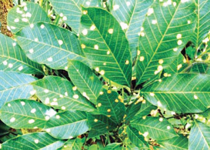 text_fieldsഇലപ്പൊട്ടുരോഗം ബാധിച്ച റബർ ഇലകൾ