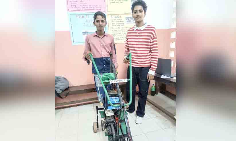 പ്ലസ് വണ് വിദ്യാര്ഥികളായ എസ്. അഗ്നിവേഷും എം.അഭിജിത്തും ആഗ്രോ ടില്ലറുമായി