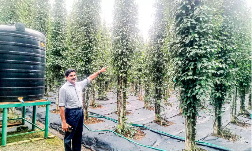 കിഴക്കമ്പലം: വിയറ്റ്നാം മോഡൽ കുരുമുളക് കൃഷിയുമായി കിഴക്കമ്പലം സ്വദേശി പുഞ്ചപ്പുതുശ്ശേരിൽ പീറ്റർ ജോസഫ്. ഒരു ഏക്കറിൽ 800 ചുവട് കുരുമുളകാണ് പ്രത്യേകം തയാറാക്കിയ കോൺക്രീറ്റ് കാലിൽ പീറ്റർ പിടിപ്പിച്ചിരിക്കുന്നത്. ഒരു മീറ്റർ മണ്ണിനടിയിലേക്കും എട്ട് മീറ്റർ മുകളിലേക്കുമാണ്. വ്യാസം കുറഞ്ഞതും ഒരു മീറ്റർ ആഴമുള്ളതുമായ കുഴികൾ എടുത്തശേഷം ക്രെയിനുകളുടെ സഹായത്തോടെയാണ് കോൺക്രീറ്റ് കാലുകൾ നാട്ടിയത്.