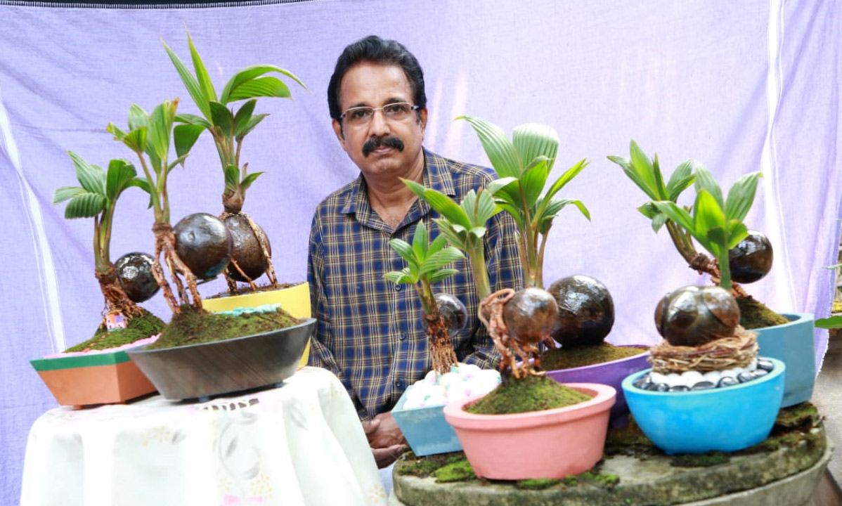തെങ്ങിന്റെ ബോൺസായ് തീർത്ത് പ്രവാസിയുടെ വിജയഗാഥ