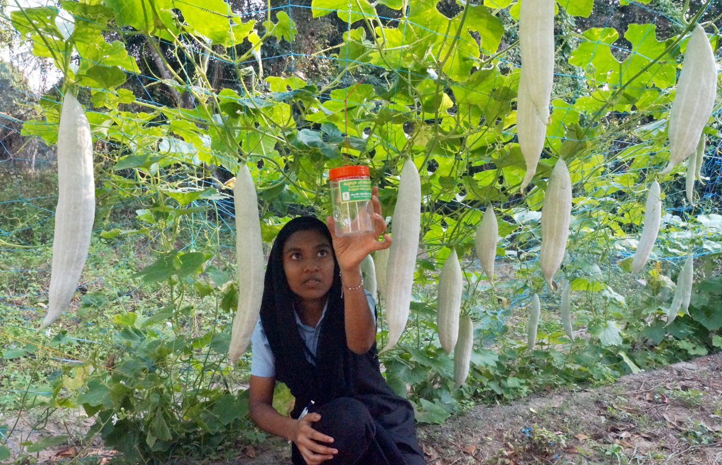 ചിലയിനം പച്ചക്കറികളുടെ ഗ്രാഫ്റ്റ് ചെയ്ത തൈകളാണ് നട്ടത്. വിദ്യാര്ഥികളുടെ നേതൃത്വത്തിലായിരുന്നു ഗ്രാഫ്റ്റിങ്. വെള്ളരിവര്ഗ വിളകളിലും വഴുതിന വര്ഗ വിളകളിലും പരീക്ഷണം വിജയകരമായിരുന്നു. രോഗപ്രതിരോധശേഷി കൂടുന്നതാണ് ഇതിന്െറ മെച്ചം. മണ്ണിര കമ്പോസ്റ്റും, ഫിഷ് അമിനോ ആസിഡും, ജീവാമൃതവും ഗോമൂത്രവുമെല്ലാമാണ് വളങ്ങള്. ആരും വിളിച്ചില്ളെങ്കിലും വിരുന്നത്തെുന്ന കീടങ്ങളെ കുടുക്കാന് മഞ്ഞ, നീല കെണികളുണ്ട്. ഫെറമോണ് കെണികള് മാത്രമല്ല, പുളിയുറുമ്പുകളും ഇവിടുത്തെ മിത്രപ്പട്ടികയിലുണ്ട്. കൃഷിയിടത്തില് കുടിയിരിക്കാന് എത്തിയ കീടങ്ങളെ ഒറ്റയടിക്ക് അവസാനിപ്പിക്കാവുന്ന ഒരുകൂട്ടരുണ്ട് ഇവിടെ -കുട്ടിപ്പട്ടാളം. കണ്ണില് കാണുന്ന കീടങ്ങളെയും പുഴുക്കളെയും പിടികൂടി നശിപ്പിക്കാന് ഇടക്ക് ഇവരെ നിയോഗിക്കും. ഈ കെണിയൊന്നും കെണിയല്ലാത്തവര്ക്കുള്ളതാണ് വിളക്കുകെണി. വെട്ടം കണ്ട് ഭ്രമിച്ചവര് നിലതെറ്റി ചുവട്ടിലെ പ്ളാസ്റ്റിക് വീപ്പയില് വീഴും. ഉടന് മലേഷ്യന് വാളകള്ക്ക് ഇരയാവും. വെയില്വെട്ടം മങ്ങുമ്പോള് തനിയെ തെളിയുന്ന വിളക്കുകെണിക്ക് ഊര്ജമേകാന് സോളാര് പാനലും അനുബന്ധ ഉപകരണങ്ങളുമുണ്ട്. വെറുതെ ഒരു വീപ്പയില് മീനുകളെ പാര്പ്പിച്ചതല്ല. അവ മണ്ണില്ലാകൃഷിയുടെ ഭാഗമാണ്. വിളകള്ക്കുള്ള വളത്തില് ഒരു പങ്ക് ഇതുവഴിയാണ് കിട്ടുന്നത്.
