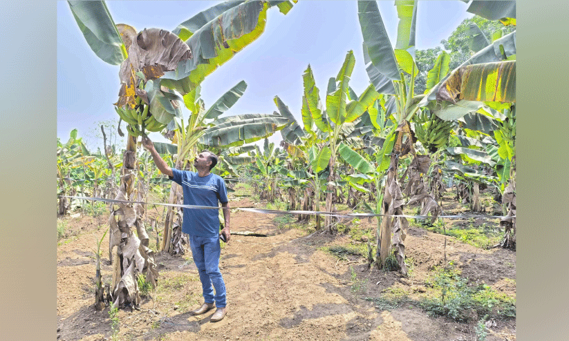 മുമ്പ് റബർ മരം ഉണ്ടായ പ്രദേശം വെട്ടിത്തെളിച്ചാണ് കൃഷി ചെയ്യുന്നത്.
