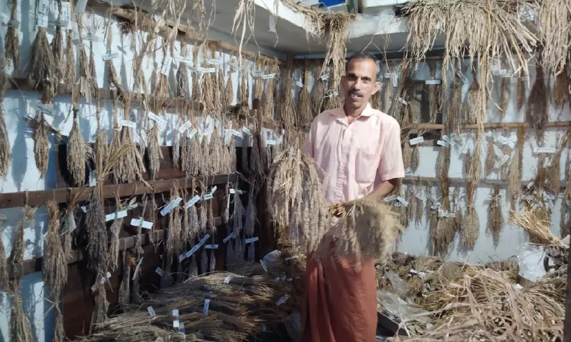 കാസർകോട്: ‘മൂന്നുമീറ്റർ വീതി, രണ്ടരമീറ്റർ നീളം’ ഇത്രയും ചെറിയ ഷെഡിനകത്താണ് രാജ്യം പത്മശ്രീ നൽകി ആദരിച്ച ‘മഹത്വം’ കുടികൊള്ളുന്നത് എന്നുപറഞ്ഞാൽ വിശ്വസിക്കാൻ പ്രയാസമുണ്ടാകും. വംശനാശം സംഭവിക്കുന്ന 650ഓളം പരമ്പരാഗത നെൽവിത്തിനങ്ങൾ സംരക്ഷിക്കുകയെന്ന വിലപ്പെട്ട സംഭാവന രാജ്യത്തിന് നൽകിയതിന് 2024ൽ പത്മശ്രീ നൽകി ആദരിച്ച കാസർകോട് ബെള്ളൂരിലെ കിന്നിംഗാർ ബലേരിയിലെ സത്യനാരായണ ബലേരിയാണ് വിത്തിനങ്ങൾ സൂക്ഷിക്കാനിടമില്ലാതെ പ്രയാസപ്പെടുന്നത്.
