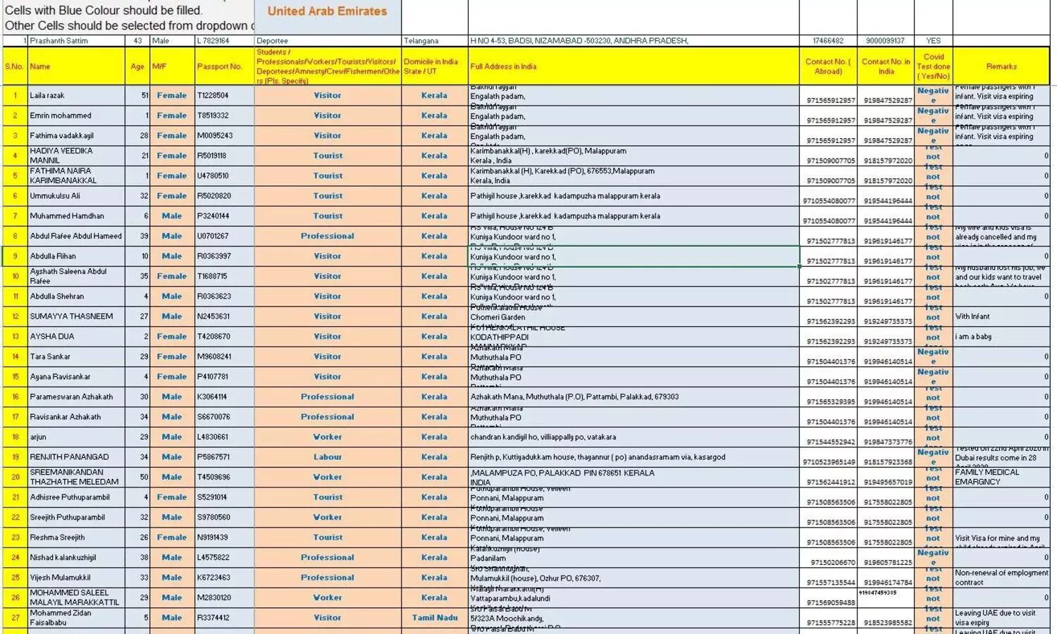 യാത്രക്കാരുടെ പേരുവിവരം പുറത്തുവിട്ടു