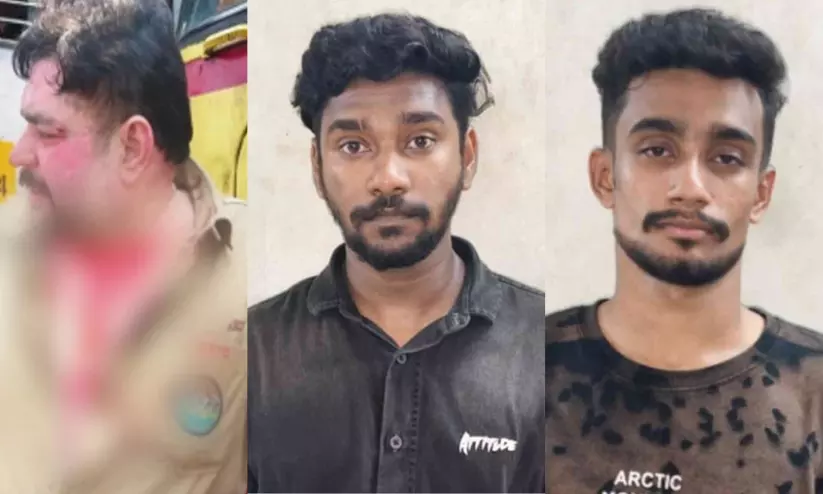 ആക്രമണത്തിൽ പരിക്കേറ്റ കെ.എസ്.ആർ.ടി.സി ഡ്രൈവർ, അറസ്റ്റിലായ അമീർ ഷാ, മുഹമ്മദ് റിസ്വാൻ