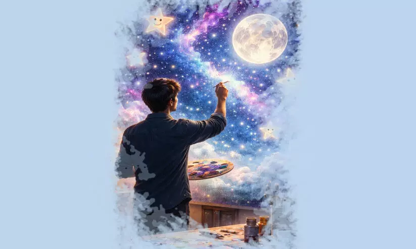 നിലാവിന്റെ വശ്യതയിൽ അലിഞ്ഞുചേരാൻ അയാൾ ഉത്കടമായി മോഹിച്ചു. എല്ലാ മോഹങ്ങളും സാക്ഷാത്കരിക്കാനുള്ള തിരിച്ചറിവിന്റെ ഭാഗമായാണ് അയാൾ ചായങ്ങളും ബ്രഷുകളും മാറിമാറി കൈയിലെടുത്തത്... പിന്നെ അയാളുടെ വരമുറിയിൽ ആകാശവും നക്ഷത്രക്കുഞ്ഞുങ്ങളും നിലാവും നിറയാൻ തുടങ്ങി...