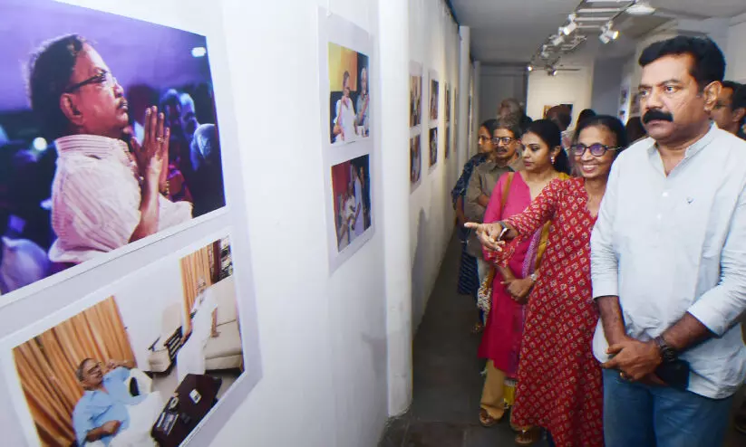 ആർട്ട് ഗാലറിയിൽ ബീക്കൺ കാലിക്കറ്റിന്റെ ആഭിമുഖ്യത്തിൽ ആരംഭിച്ച ഫോട്ടോഗ്രാഫർ ആർ.വി സതിയുടെ ‘എം.ടി- ഓർമചിത്രങ്ങൾ’ ഫോട്ടോ പ്രദർശനം എഴുത്തുകാരൻ സുഭാഷ് ചന്ദ്രൻ ഉദ്ഘാടനം ചെയ്ത ശേഷം കാണുന്നു.