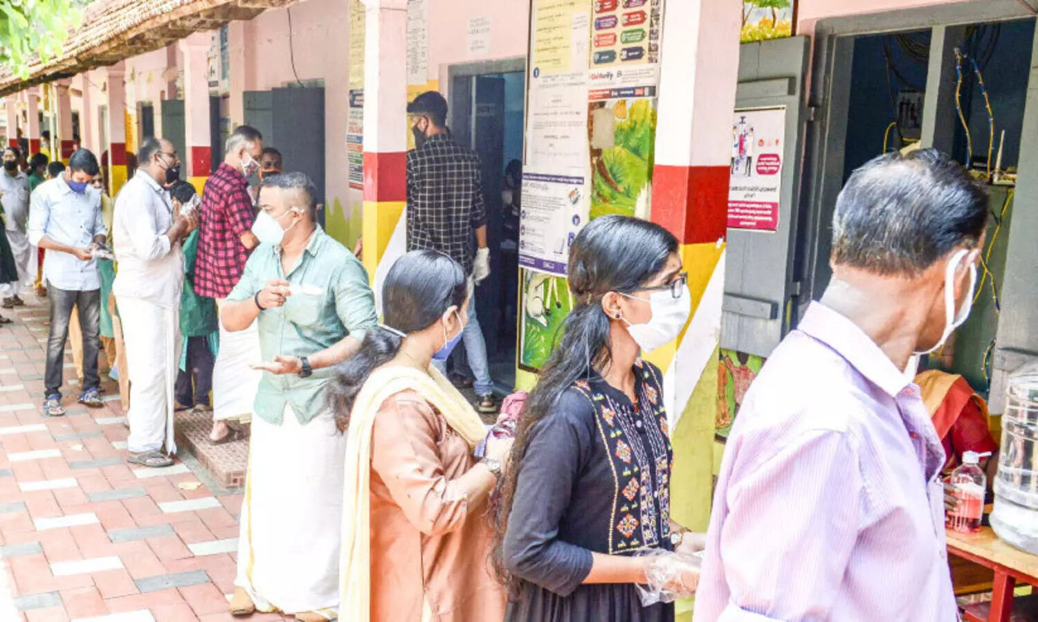 കോട്ടയം ഒളശ്ശ ഗവ. എൽ.പി സ്കൂളിൽ വോട്ട് ചെയ്യാൻ കാത്തുനിൽക്കുന്നവർ