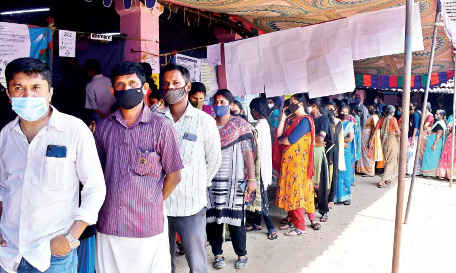സാമൂഹിക അകലമടക്കം നിർദേശങ്ങൾ അവഗണിച്ച് പലയിടത്തും വോട്ടർമാർ കൂട്ടം കൂടുന്നതും കാണാമായിരുന്നു. മുതലമട മൂച്ചങ്കുണ്ടിൽ മാസ്കില്ലാതെ വോട്ട് ചെയ്യാനെത്തിയ 24 പേരെ അധികൃതർ തിരിച്ചയച്ചു. ഗ്രാമീണ മേഖലയിൽ മിക്കയിടങ്ങളിലും രാവിലെ മുതൽതന്നെ മികച്ച പോളിങ്ങായിരുന്നു രേഖപ്പെടുത്തിയത്. മികച്ച വനിതപങ്കാളിത്തവും ഇക്കുറി ജില്ലയിലെ ഗ്രാമീണമേഖലകളിലെ വോട്ടിങ്ങിൽ പ്രകടമായിരുന്നു.