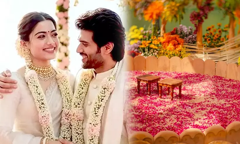 തെലുങ്ക് സിനിമാലോകത്തെ ഏറ്റവും ജനപ്രിയമായ ഓൺ-സ്ക്രീൻ ജോഡികളിലൊന്നാണ് വിജയ് ദേവരകൊണ്ടയും രശ്മിക മന്ദാനയും. ഇവരുടെ പേരുകൾ ചേർത്തുവെച്ച് ആരാധകർ നൽകിയ 'വിരോഷ്' എന്ന പേര് ഇന്ന് സോഷ്യൽ മീഡിയയിൽ തരംഗമാണ്. ഇന്നാണ് ആരാധകർ കാത്തിരുന്ന വിജയ് ദേവരകൊണ്ടയും രശ്മിക മന്ദാന വിവാഹം. വിവാഹവാർത്ത പുറത്തുവന്നതോടെ 'വിരോഷ്' എന്ന പേര് വീണ്ടും ചർച്ചകളിൽ നിറയുകയാണ്. ഇരുവരുടെയും വിവാഹ ക്ഷണകത്തിലൂടെയാണ് വിവാഹ തിയതി ആരാധകരിലേക്കെത്തിയത്.