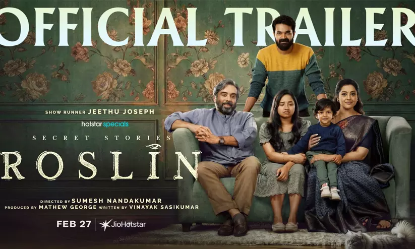ജിയോഹോട്ട്സ്റ്റാറിന്റെ ഏറ്റവും പുതിയ വെബ് സീരീസ് 'സീക്രട്ട് സ്റ്റോറീസ്: റോസ്ലിൻ' ട്രെയിലർ പുറത്ത്. ചിത്രം ഫെബ്രുവരി 27ന് സ്ട്രീമിങ് ആരംഭിക്കും. പ്രശസ്ത ഗാനരചയിതാവ് വിനായക് ശശികുമാർ ആദ്യമായി തിരക്കഥ എഴുതിയ ഈ സീരീസിന്റെ ഷോ റണ്ണർ മലയാളത്തിന്റെ പ്രിയ സംവിധായകൻ ജീത്തു ജോസഫാണ്. സുമേഷ് നന്ദകുമാർ സംവിധാനം ചെയ്തിരിക്കുന്ന ഈ സീരീസ് നിർമിച്ചിരിക്കുന്നത് സെൻട്രൽ അഡ്വർടൈസിങിന്റെ ബാനറിൽ മാത്യു ജോർജ്ജാണ്.