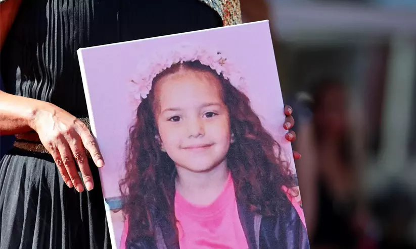 വെനീസ് ചലച്ചിത്രമേളയിൽ ഹിന്ദ് റജബിന്റെ ചിത്രം പിടിച്ചുകൊണ്ട് ടുണീഷ്യൻ സംവിധായിക കൗതർ ബെൻ ഹാനിയ