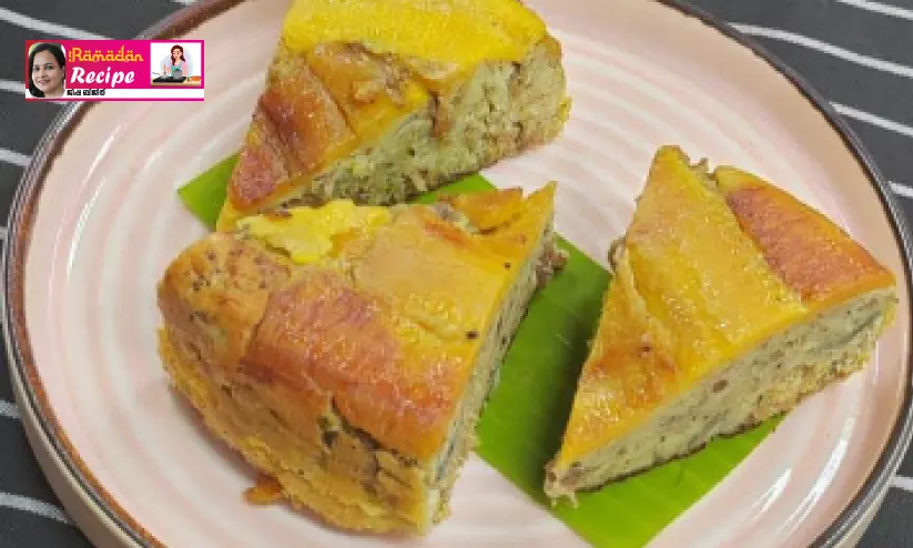 ഒരു മിക്സിയിൽ മുട്ട, മൈദ, പാൽ, കുറച്ച് ഉപ്പ് എന്നിവ ചേർത്ത് അടിച്ചെടുക്കുക. ഇത് കുറച്ച് ഓയിൽ ചേർത്ത് തയ്യാറാക്കിയ മസാലയിൽ ചേർത്ത് ഇളക്കുക. ഇനി ഒരു പാനിൽ കുറച്ച് നെയ്യ് ചേർക്കുക. അതിലേക്ക് തയ്യാറാക്കിയ കൂട്ടം ചേർത്ത് കൊടുക്കുക. ചെറുതീയിൽ വെച്ച് വേവിച്ചെടുക്കുക. മുക്കാൽ വേവാകുമ്പോൾ നെയ്യിൽ വാട്ടിയ നേന്ത്രപ്പഴം ചേർക്കുക. വെന്താൽഗോൾഡൻ കളർ ആകുന്നതുവരെ ചൂടാക്കുക.