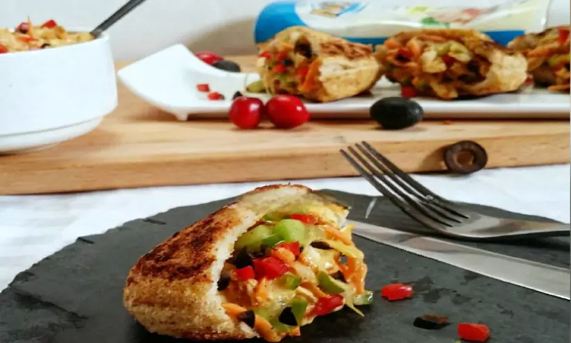 7. ഈ ബ്രെഡ് സർക്കിളുകൾ രണ്ട് പകുതിയായി മുറിച്ച് പോക്കറ്റുകൾ പോലെ തുറക്കുക. തയാറാക്കിയ ചിക്കൻ ഫില്ലിങ് അതിൽ നിറച്ച് ഉടൻ സേർവ് ചെയ്യുക.