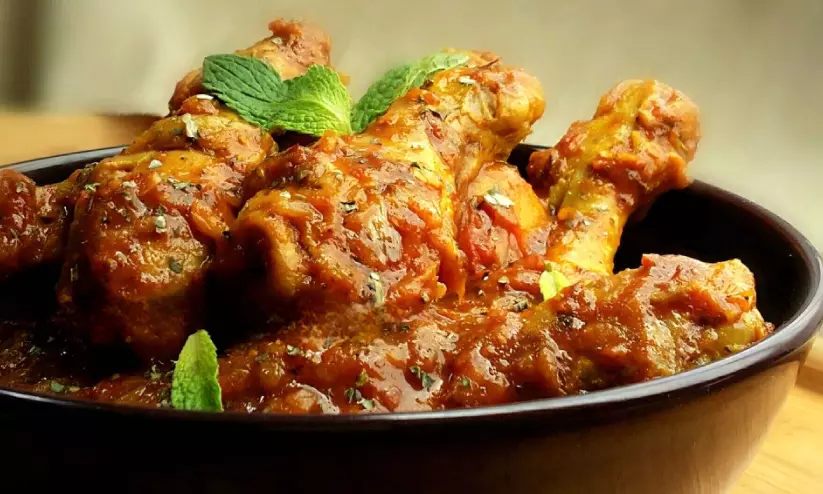 2. അരിഞ്ഞ തക്കാളി ചേർത്ത് മൃദുവാകുന്നതുവരെ വേവിക്കുക. തുടർന്ന് മുളകുപൊടി, മഞ്ഞൾപ്പൊടി, ഉപ്പ് എന്നിവ ചേർത്ത് എണ്ണ തെളിഞ്ഞു വരുന്നതുവരെ നന്നായി വഴറ്റിയതിനു ശേഷം വൃത്തിയാക്കിയ ചിക്കൻ കഷണങ്ങൾ ചേർത്ത് നന്നായി യോജിപ്പിക്കുക.