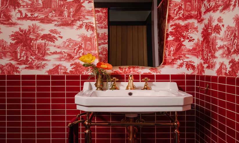 ഏത് മുറിക്കും തിളങ്ങുന്ന ചെറി ചുവപ്പ് നിറം ഒരു പ്രത്യേക ഭംഗി നൽകും. പക്ഷേ, ഒരു കുളിമുറിയിൽ വരുമ്പോൾ അത് മറ്റൊരു ലുക്ക് ആവും.