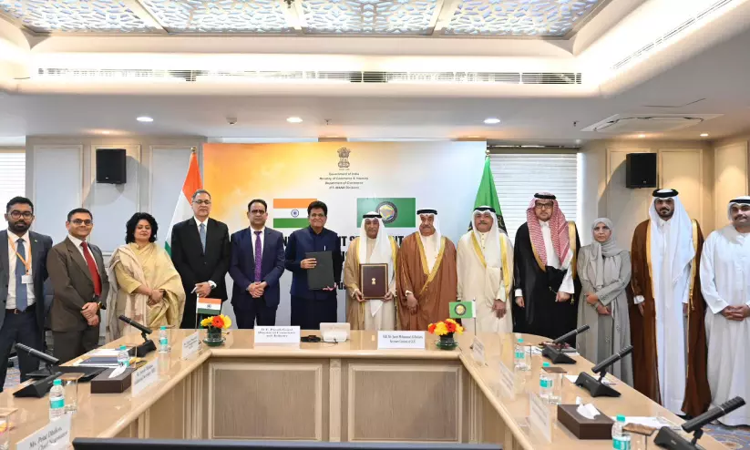 മസ്കത്ത്: ജി.സി.സിയും ഇന്ത്യയും തമ്മിലുള്ള സ്വതന്ത്ര വ്യാപാര കരാറിനായുള്ള (എഫ്.ടി.എ) ചർച്ചകൾ ആരംഭിക്കുന്നത് തന്ത്രപരമായ പങ്കാളിത്തത്തിന്റെ ഒരു പുതിയ ഘട്ടമാണെന്ന് ഗൾഫ് സഹകരണ കൗൺസിൽ (ജി.സി.സി) സെക്രട്ടറി ജനറൽ ജാസിം അൽ ബുദൈവി. എഫ്.ടി.എ ചർച്ചകൾ ആരംഭിക്കുന്നതിനുള്ള സംയുക്ത പ്രസ്താവനയിൽ ബുദൈവിയും ഇന്ത്യൻ വാണിജ്യ വ്യവസായ മന്ത്രി പിയൂഷ് ഗോയലും തമ്മിൽ ഒപ്പുവെക്കുന്ന ന്യൂഡൽഹിയിൽ നടന്ന ചടങ്ങിനിടെയാണ് ജാസിം അൽ ബുദൈവിയുടെ പരാമർശം.