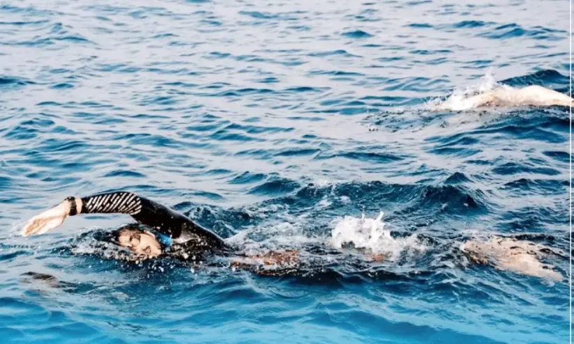 മനാമ: സൗദി അറേബ്യയിൽനിന്ന് ബഹ്റൈൻ തീരത്തേക്ക് 44.5 കി.മീ. ദൂരം നീന്തിക്കടന്ന് ശൈഖ് ഖാലിദ് ബിൻ ഹമദ് സ്വിമ്മിങ് ചലഞ്ച് ടീം. ശക്തമായ കടൽ ഒഴുക്കിനെ അതിജീവിച്ച് 22 മണിക്കൂർ 2 മിനിറ്റ് 24 സെക്കൻഡ് നീണ്ട കഠിന പരിശ്രമത്തിനൊടുവിലാണ് ടീം ഈ ചരിത്രനേട്ടം കൈവരിച്ചത്. സൗദിയിലെ അൽഅസീസിയയിൽനിന്ന് തുടങ്ങിയ യാത്ര ബഹ്റൈനിലെ സലാഖ് തീരത്താണ് അവസാനിച്ചത്.സൗദി അറേബ്യയിലെ സൺസെറ്റ് ബീച്ച് റിസോർട്ടിൽ (അൽഅസീസിയ) നിന്നായിരുന്നു സാഹസികയാത്ര ആരംഭിച്ചത്.