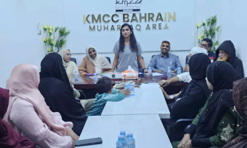 മനാമ: കെ.എം.സി.സി ബഹ്റൈൻ വനിതാ വിങ്ങിന്റെ പ്രവർത്തനോദ്ഘാടനത്തിനെത്തിയ മലപ്പുറം ജില്ല പഞ്ചായത്ത് വൈസ് പ്രസിഡന്റ് അഡ്വ. സ്മിജിക്ക് കെ.എം.സി.സി മുഹറഖ് ഏരിയ കമ്മിറ്റിയും ലേഡീസ് വിങ്ങും സ്വീകരണം നൽകി. കെ.എം.സി.സി ഓഫിസിൽ നടന്ന ചടങ്ങിൽ കെ.എം.സി.സി മുഹറഖ് ആക്ടിങ് പ്രസിഡന്റ് ഇബ്രാഹിം തിക്കോടി അധ്യക്ഷതവഹിച്ചു. എൻ.കെ.അബ്ദുൽ കരീം മാസ്റ്റർ യോഗം ഉദ്ഘാടനം ചെയ്തു.