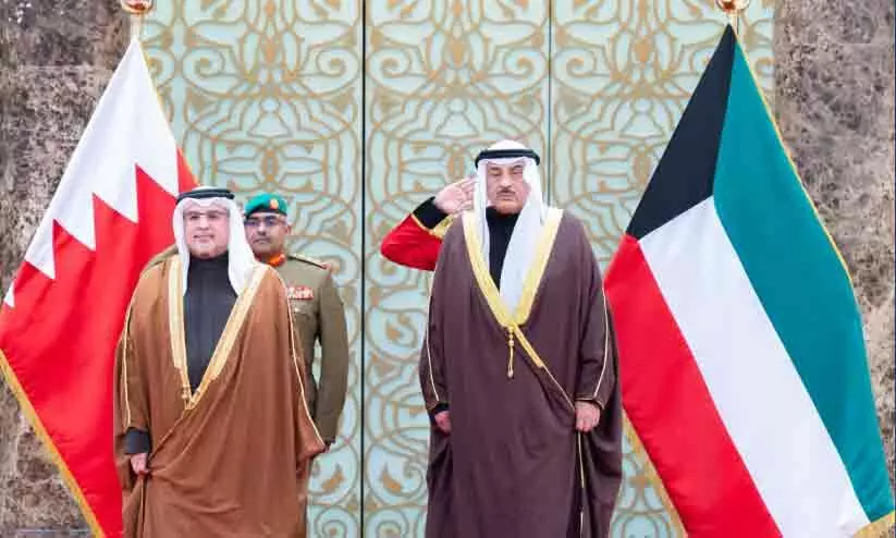 കുവൈത്തിലെത്തിയ ബഹ്റൈൻ കിരീടാവകാശിയെ സ്വീകരിക്കുന്നു