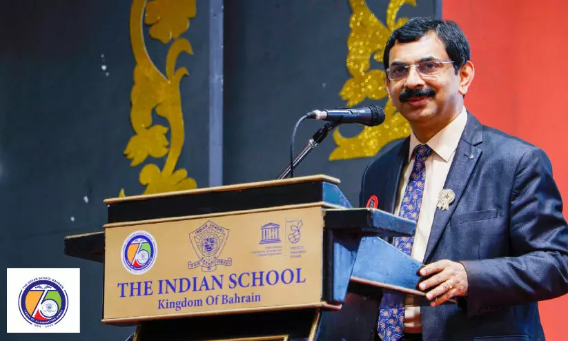 ഇന്ത്യൻ സ്ക്കൂൾ ചെയർമാൻ അഡ്വ ബിനു മണ്ണിൽ വറുഗീസ് സംസാരിക്കുന്നു