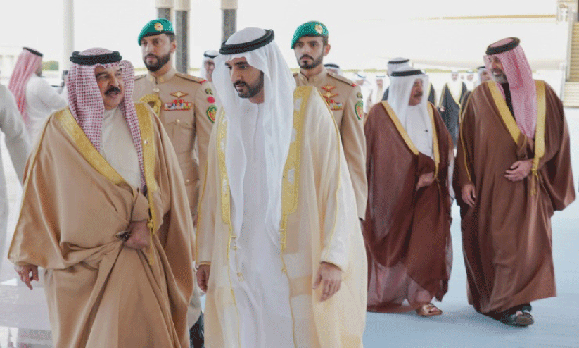 യു.എ.ഇ പ്രസിഡന്റ് ശൈഖ് മുഹമ്മദ് ബിൻ സായിദ് അൽ നഹ്യാന്റെ ക്ഷണപ്രകാരെമത്തിയ ഹമദ് രാജാവിനെ എയർപോർട്ടിൽ ദുബൈ കിരീടാവകാശി ശൈഖ് ഹംദാൻ ബിൻ മുഹമ്മദ് ബിൻ റാശിദ് അൽ നഹ്യാന്റെ നേതൃത്വത്തിൽ സ്വീകരിച്ചു.