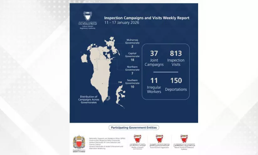 തൊഴിൽ വിപണിയുടെ സുരക്ഷിതത്വവും മത്സരക്ഷമതയും ഉറപ്പാക്കാൻ വരും ദിവസങ്ങളിലും പരിശോധന തുടരുമെന്ന് അധികൃതർ വ്യക്തമാക്കി. നിയമവിരുദ്ധ തൊഴിൽ രീതികൾ ശ്രദ്ധയിൽപെട്ടാൽ www.lmra.gov.bh എന്ന വെബ്സൈറ്റ് വഴിയോ 17506055 എന്ന നമ്പറിലോ അധികൃതരെ അറിയിക്കണമെന്ന് അഭ്യർഥിച്ചു.