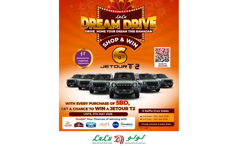 മനാമ: ഈ റമദാൻ കാലത്ത് ഉപഭോക്താക്കൾക്കായി ലുലു ഹൈപ്പർമാർക്കറ്റ് ഒരുക്കിയ 'ഡ്രീം ഡ്രൈവ്' മെഗാ റാഫിൾ പ്രമോഷൻ ആവേശകരമായ ഘട്ടത്തിലേക്ക്. ആകെ ആറ് ജെറ്റൂർ T2 എസ്.യു.വി കാറുകൾ സമ്മാനമായി നൽകുന്ന പദ്ധതിയിൽ, ഇനി 4 കാറുകൾ കൂടി വിജയികളെ കാത്തിരിക്കുകയാണ്. പ്രമോഷന്റെ ഭാഗമായുള്ള ഇ-റാഫിൾ നറുക്കെടുപ്പ് മെയ് 5 വരെ നീട്ടിയിട്ടുണ്ട്.