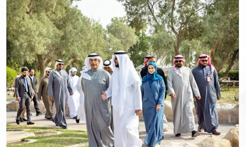 മുഹമ്മദ് ബിൻ സായിദ് പ്രകൃതി സംരക്ഷണ കേന്ദ്രം സന്ദർശിക്കുന്ന പരിസ്ഥിതി മന്ത്രി ഡോ. മുഹമ്മദ് ബിൻ മുബാറക് ബിൻ ദൈനയും യു.എ.ഇ സ്ഥാനപതി ഫഹദ് മുഹമ്മദ് സേലം കർദൂസ് അൽ അമീരിയും