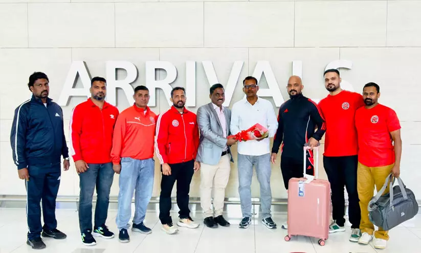 മനാമ: യോമായ് മാർഷൽ ആർട്സ് അക്കാദമി ഷിഹാൻ നഹാസ് മാസ്റ്ററുടെ നേതൃത്വത്തിൽ ഗ്രാൻഡ്മാസ്റ്റർ റിൻഷി ടി.പി നിസാർ മാസ്റ്റർക്ക് ബഹ്റൈൻ ഇന്റർനാഷനൽ എയർപോർട്ടിൽ സ്വീകരണം നൽകി. യോമായ് അക്കാദമിയുടെ സീനിയർ സ്റ്റുഡന്റ്സ് ബ്ലാക്ക് ബെൽറ്റ് ടെസ്റ്റ് ക്യാമ്പ് നിയന്ത്രിക്കുന്നതിന്റെയും ഫെബ്രുവരി 6ന് നടക്കുന്ന 100ൽപരം കുട്ടികളുടെ ബെൽറ്റ് ഡിസ്റ്റിബ്യൂഷന്റെ ഭാഗമായി കൂടി ആണ് റിൻഷി ടി.പി നിസാർ ബഹ്റൈനിൽ എത്തിച്ചേർന്നത്.