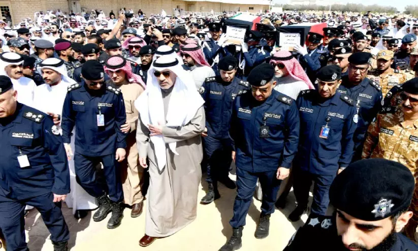 കുവൈത്ത് സിറ്റി: രാഷ്ട്ര സേവനത്തിനിടെ വീരമൃത്യുവരിച്ച സൈനികർക്ക് കുവൈത്തിന്റെ വിരോജ്ജ്വല യാത്രയയപ്പ്. ആഭ്യന്തര മന്ത്രാലയത്തിലെ ജനറൽ ഡയറക്ടറേറ്റ് ഓഫ് ലാൻഡ് ബോർഡർ സെക്യൂരിറ്റിയിൽ നിന്നുള്ള ലെഫ്റ്റനന്റ് കേണൽ അബ്ദുല്ല ഇമാദ് അൽ ഷറ, മേജർ ഫഹദ് അബ്ദുൽ അസീസ് അൽ മുജമ്മദ് എന്നിവരാണ് കഴിഞ്ഞ ദിവസം കൊല്ലപ്പെട്ടത്.
