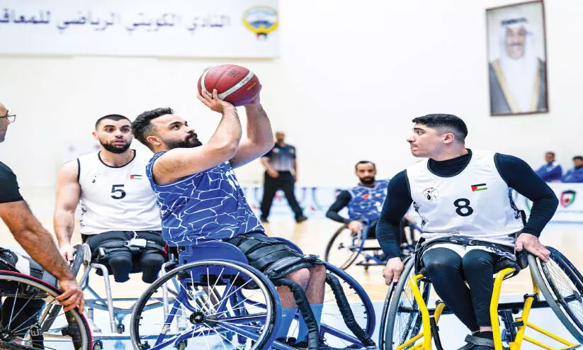 അറബ് വീൽചെയർ ബാസ്കറ്റ്ബാൾ ചാമ്പ്യൻഷിപ്പിൽ കുവൈത്ത്-ഫലസ്തീൻ പോരാട്ടത്തിൽനിന്ന്