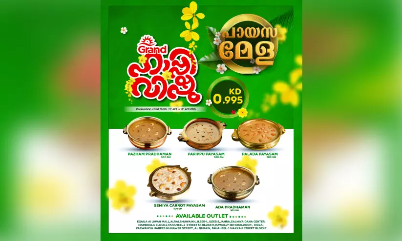 വിഷു ആഘോഷത്തിന്റെ മാറ്റുകൂട്ടാൻ ഗ്രാൻഡ് ഹൈപ്പർ ഒരുക്കുന്ന 'പായസമേള' ഉപഭോക്താക്കൾക്കായി വ്യത്യസ്ത രുചികളിലുള്ള പായസങ്ങൾ വാഗ്ദാനം ചെയ്യുന്നു. സദ്യക്ക് ആവശ്യമായ എല്ലാവിധ ഇന്ത്യൻ പച്ചക്കറികളും മറ്റ് വിഷു വിഭവങ്ങളും മിതമായ നിരക്കിൽ ഹൈപ്പർമാർക്കറ്റുകളിൽ ലഭ്യമാണ്.