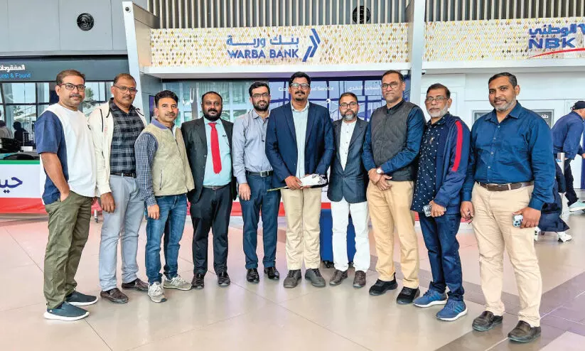 കുവൈത്ത് വിമാനത്താവളത്തിലെത്തിയ ഡോ. നഹാസ് മാളയെ സ്വീകരിക്കുന്നു