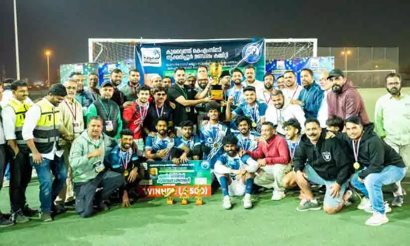 കുവൈത്ത് സിറ്റി: കെ.എം.സി.സി കാസർകോട് ജില്ല സമ്മേളന പ്രചാരണാർഥം തൃക്കരിപ്പൂർ മണ്ഡലം കമ്മിറ്റി സംഘടിപ്പിച്ച വി.കെ.പി. ഹമീദലി ഹാജി മെമ്മോറിയൽ സെവൻസ് ഫുട്ബാൾ ടൂർണമെന്റിൽ ഗ്രാന്റ് സോക്കർ എഫ്.സി ജേതാക്കൾ. ഫൈനലിൽ മാക് എഫ്.സിയെ തോൽപ്പിച്ചാണ് കിരീടനേട്ടം.